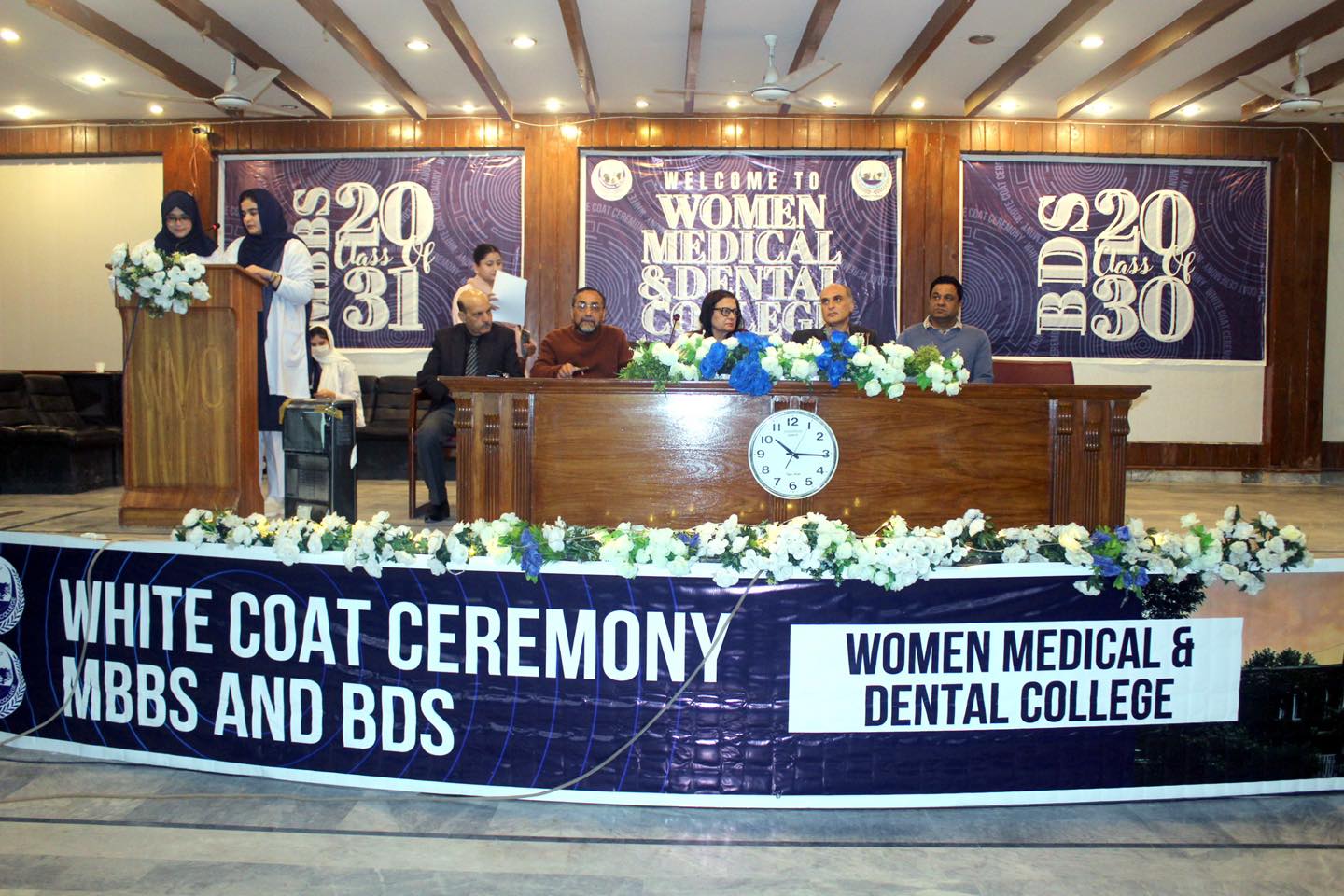 On Thursday, 19 February 2026, Women Medical & Dental College Abbottabad hosted the Orientation and White Coat Ceremony for new first year MBBS and BDS students. Principal WMC Prof. Dr. Salma Aslam Kundi and Principal WDC Prof. Dr. Shahid Khan welcomed the newcomers with inspiring addresses.