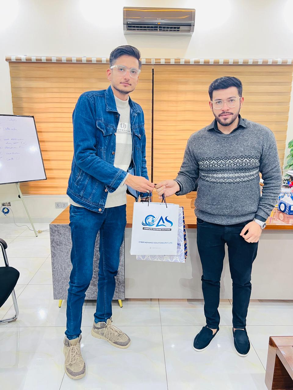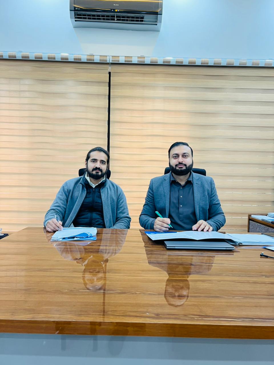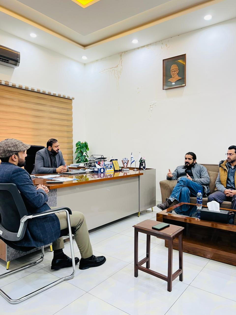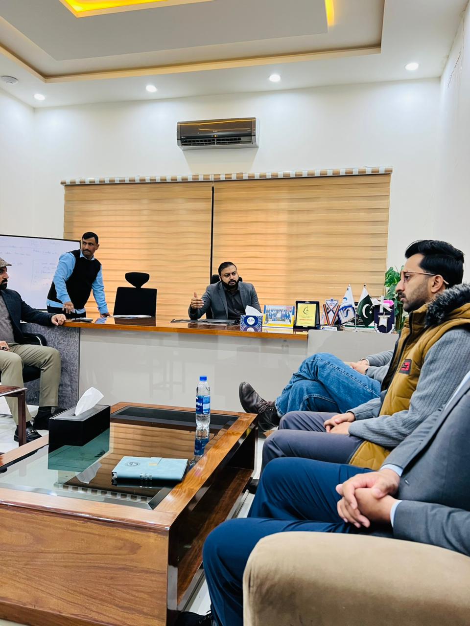 The delegation included Dr. M. Abdullah Qazi (BDS, MMEd, PhD), Mr. Asad Ali (LMS Manager), and Mr. Bilal (Network Administrator). They met with Cyber Advance Solutions’ General Manager Haseeb Khan, Deputy Manager Sales & Marketing Rao Abdul Wahid, Additional Manager Sales & Marketing Skindar Hayat, Senior Marketing Executive Daniyal Akmal, and Deputy Manager Support & Implementation Bilawal Maqsood.