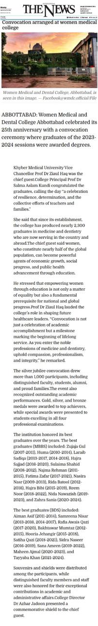 Convocation Ceremony 2025 | Women Medical & Dental College Abbottabad